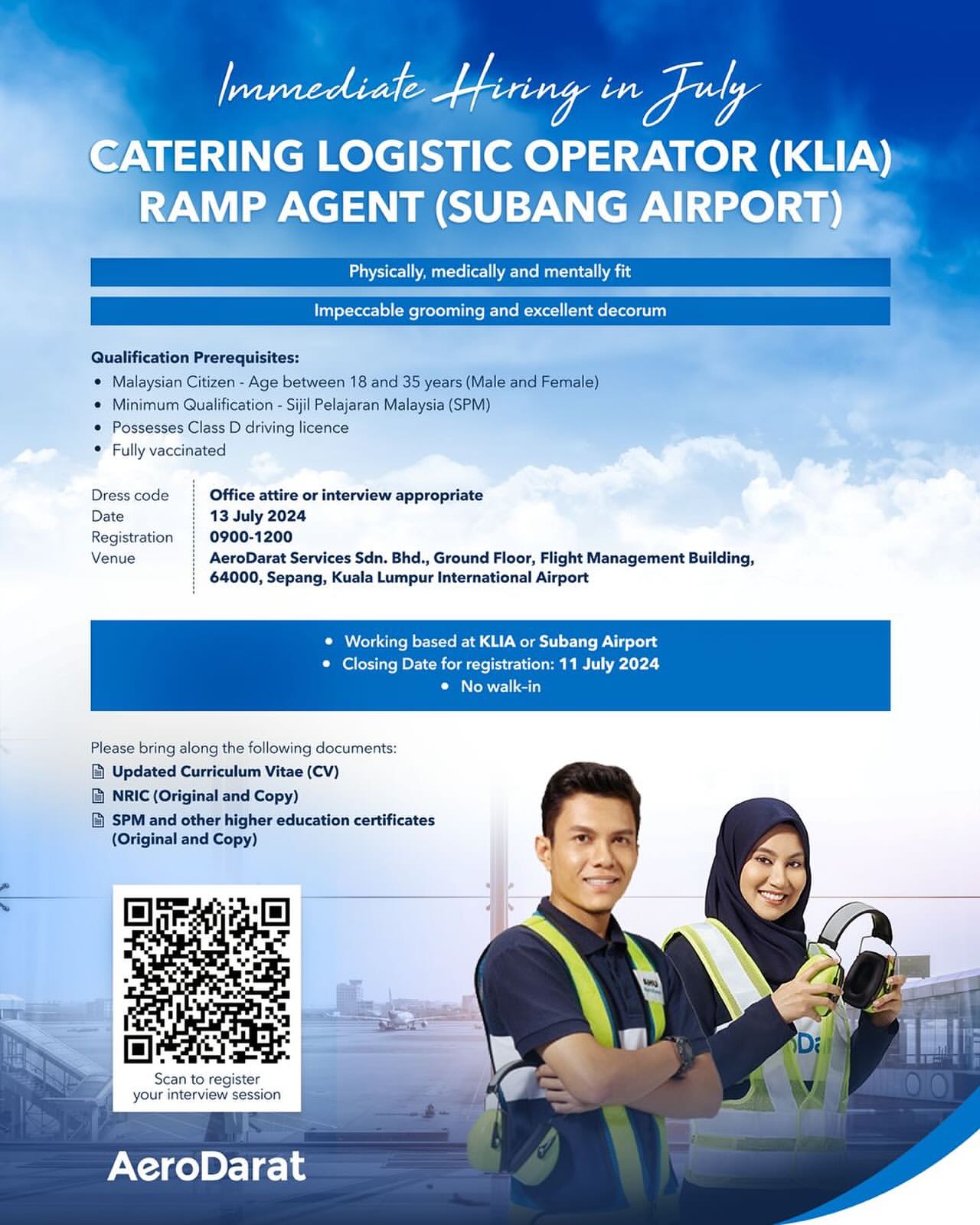 AeroDarat Services Sdn Bhd is hiring for exciting roles Ramp Agents at Subang Airport.