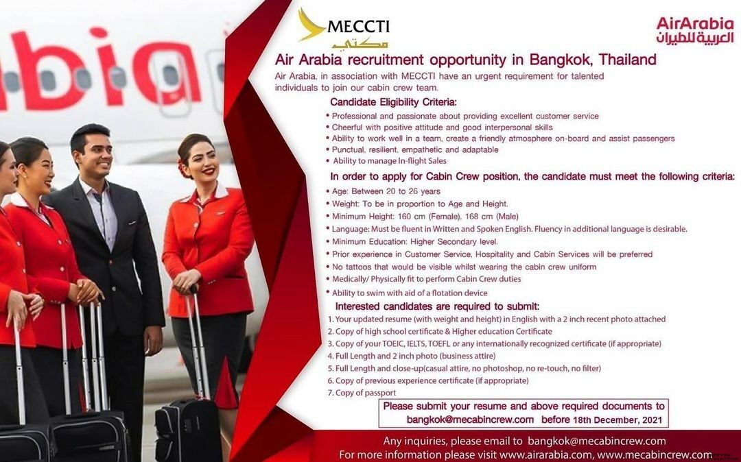 Please submit your resume and above required documents to bangkok@mecabincrew.com before 18th December, 2021.