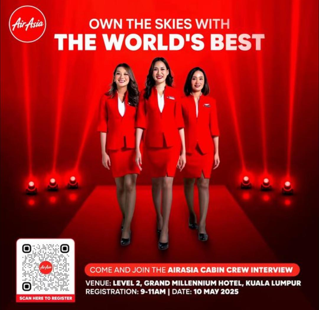 Join the grand AirAsia Cabin Crew Interview on 10 May 2025 (Saturday), 9AM-11AM at Grand Millennium Kuala Lumpur!