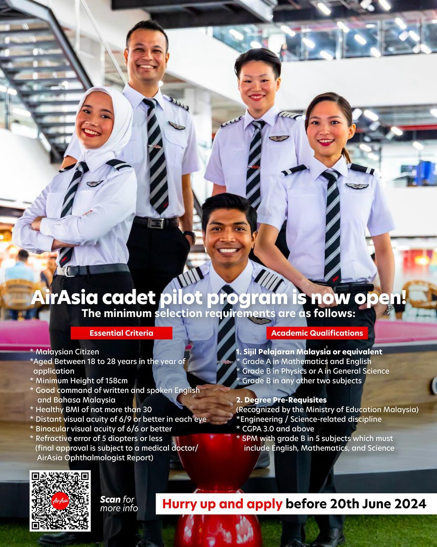 Scan the QR code or visit link below to apply: https://mycareer.airasia.com/gb/en/job/AIRAGLOBALJR0026301EXTERNALENGB/AirAsia-Cadet-Pilot/