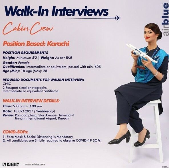 airblue Cabin Crew Walk-In Interview [Karachi] (October 2021)