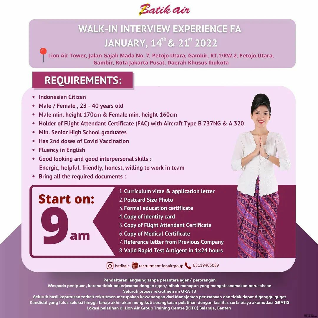 Batik Air Experienced Flight Attendant Walk-In Interview [Jakarta] (January 2022)
