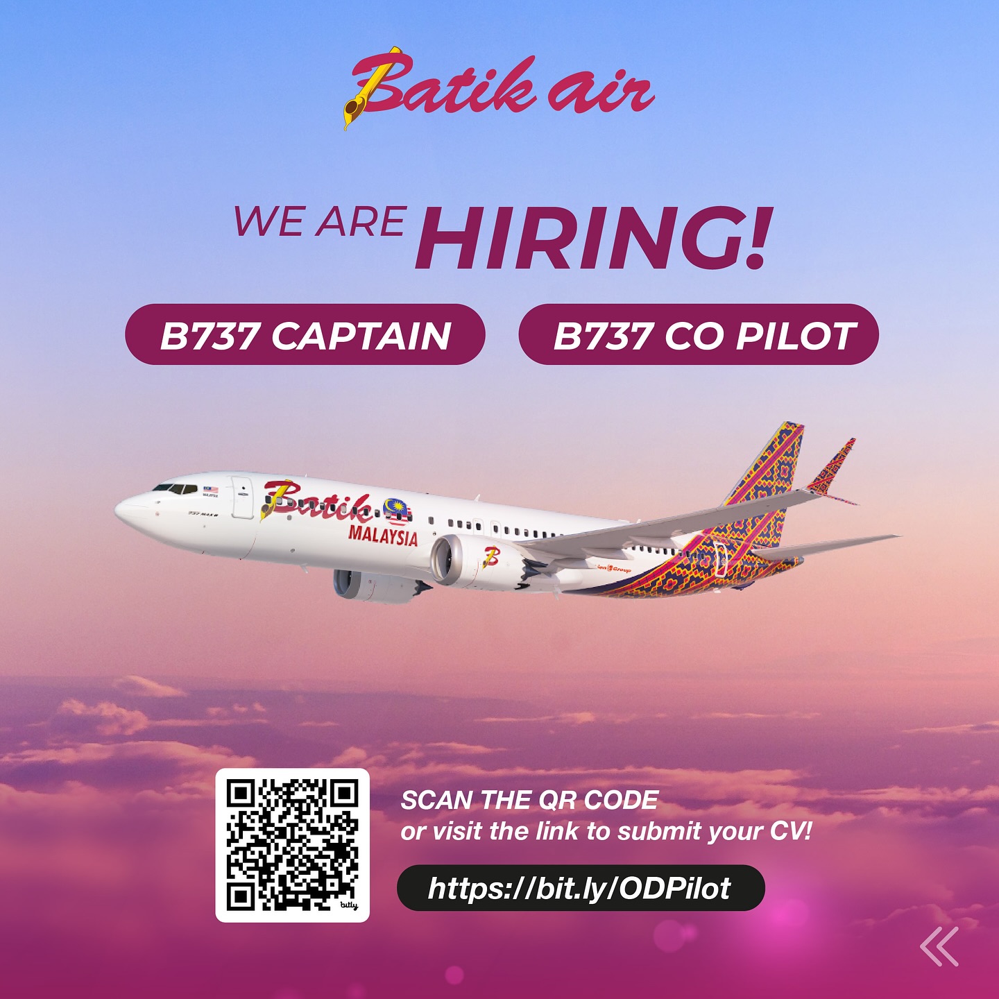 Take your career to new heights with Batik Air! We’re looking for passionate and skilled B737 Captains and Co-Pilots to join our team. Apply now and soar with us!