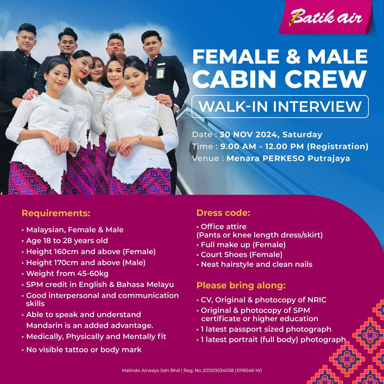 Batik Air Malaysia Cabin Crew Walk-In Interview [Putrajaya] (30 November 2024)