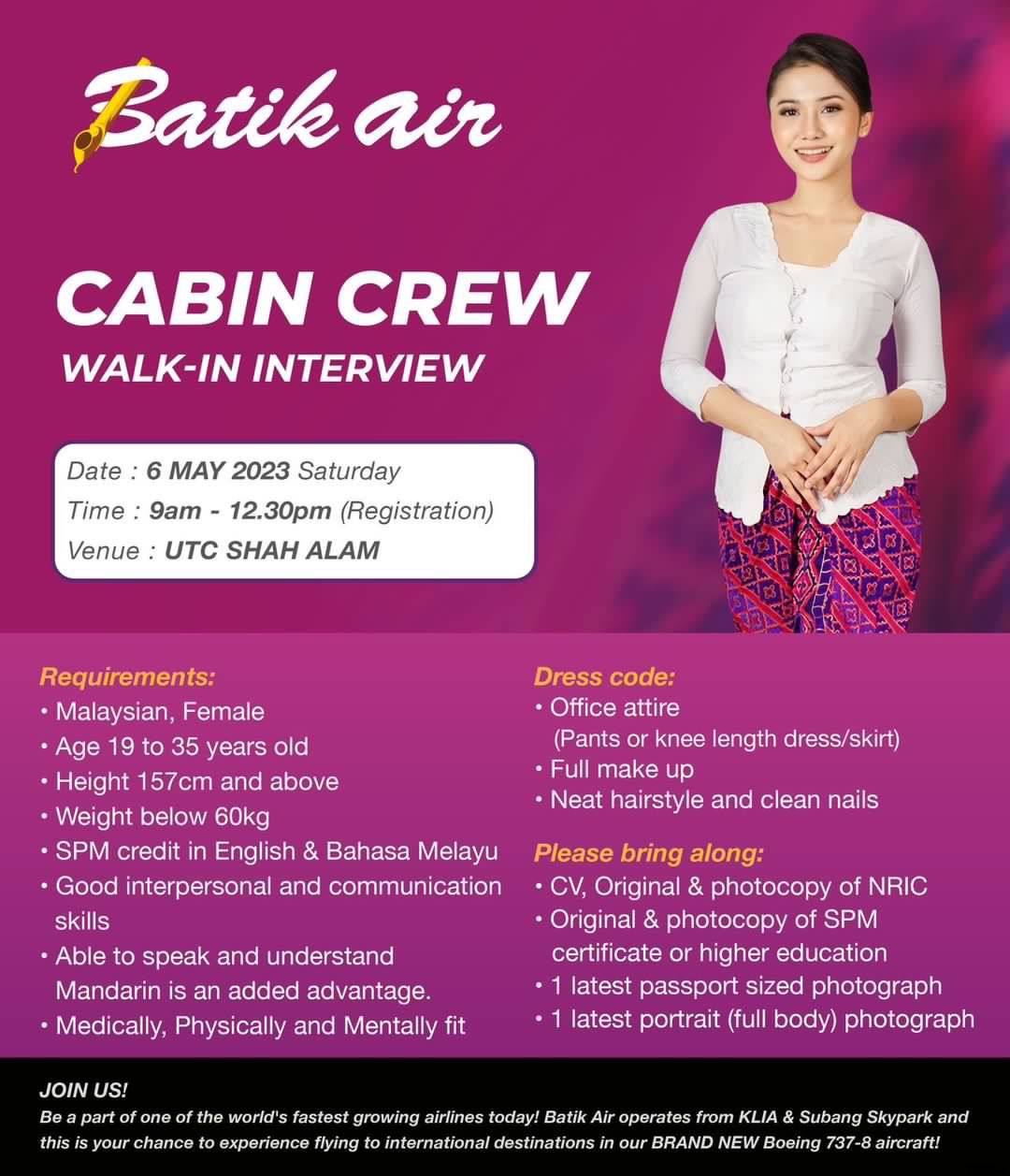 Batik Air Malaysia Cabin Crew Walk-In Interview [Shah Alam] (06 May 2023)