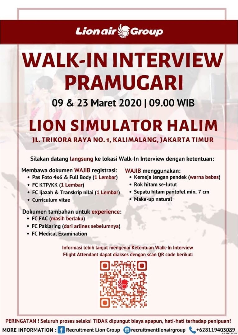 Lion Air Group Flight Attendant Walk-In Interview [Jakarta] (March 2020)
