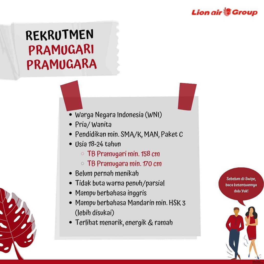 Lion Air Group is hiring Initial Flight Attendant (Pramugari / Pramugara).