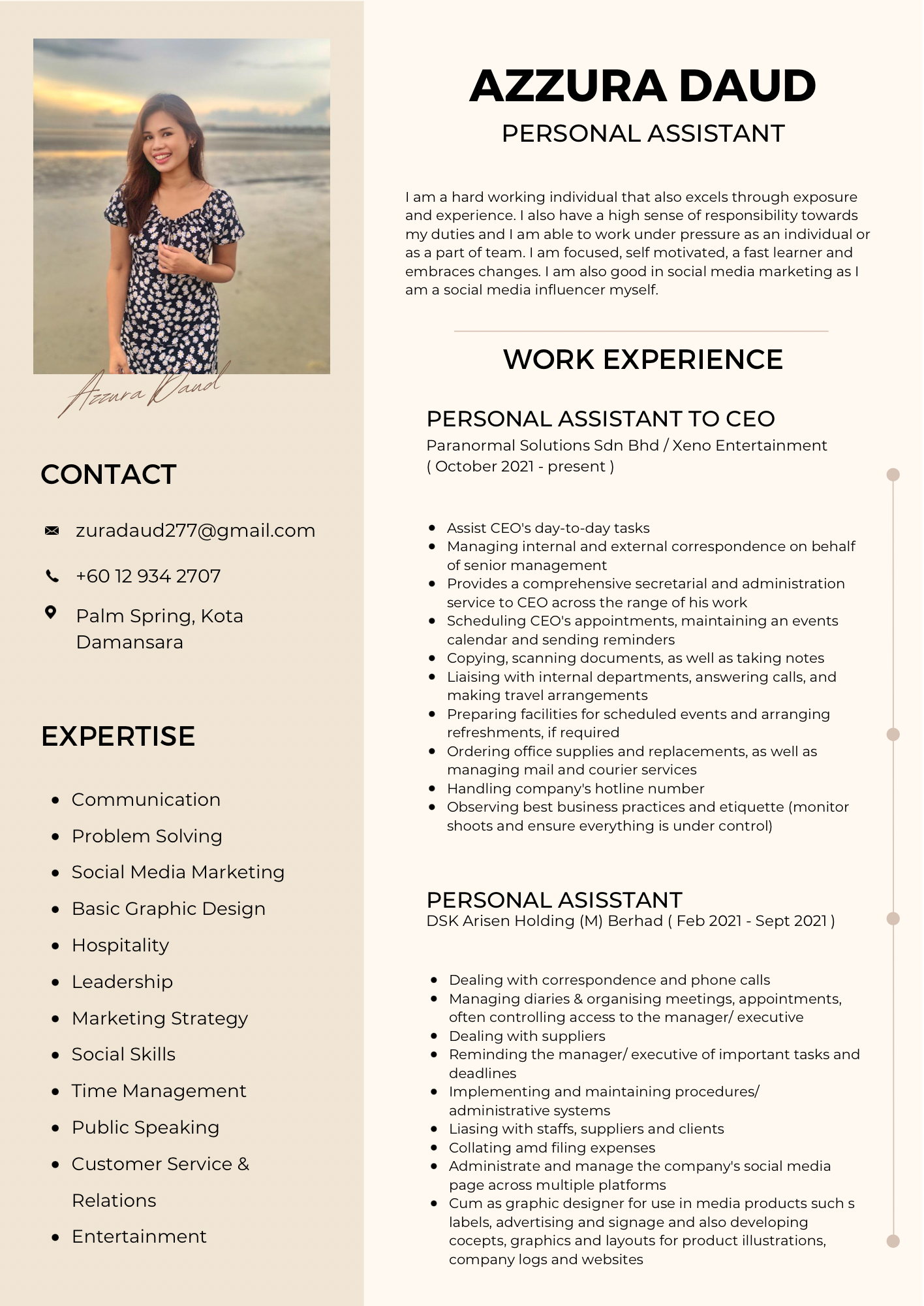 Greetings. My name is a Azzura. I’m 29 this year. Based in Kuala Lumpur, Malaysia. I am a hardworking individual that also excel through exposure and experience. Been flying with MH for two years and I always look up to fly again and try another airlines as I don’t mind being in another country or anything. I’m fully committed when it comes to work. I also have a high sense of responsibility towards my duties and I am able to work under pressure as an individual or as a part of the team.